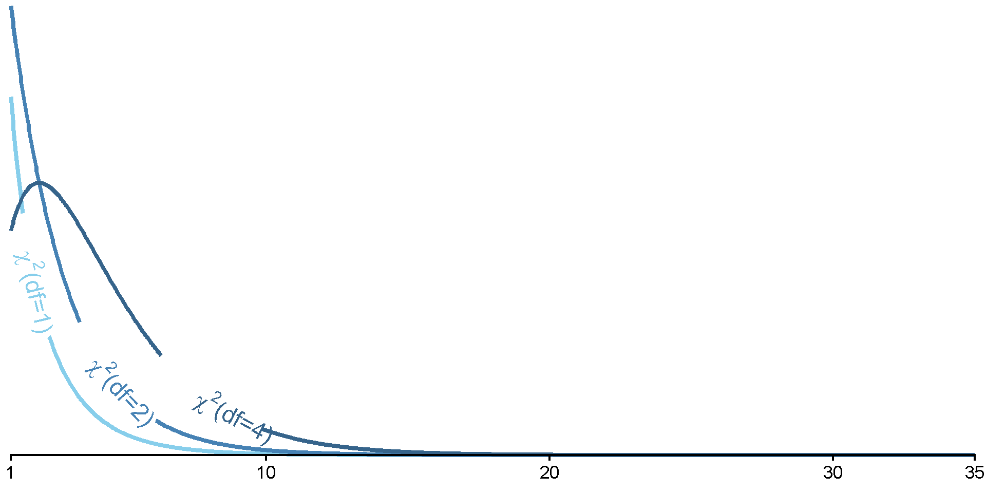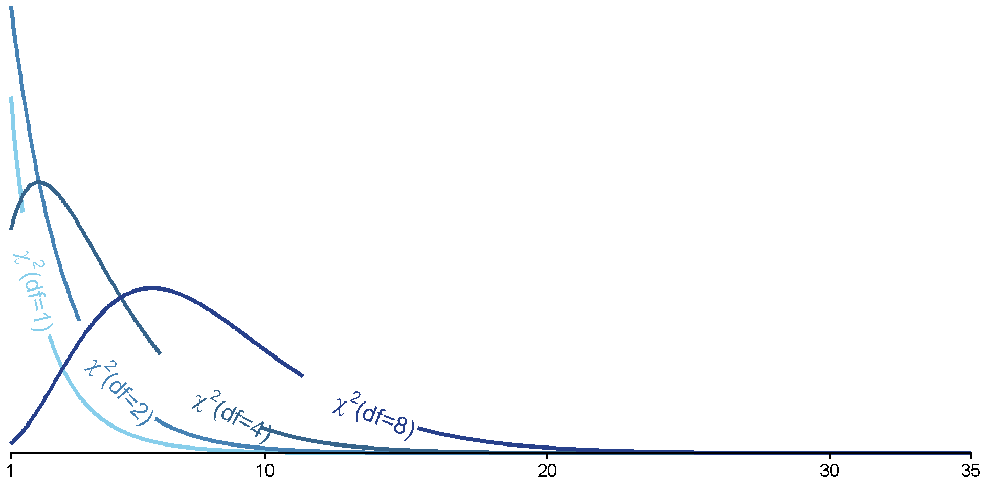 For \(\chi^2\), as \(\text{df}\) increases, so does the critical-\(\chi^2\) value (at same \(\alpha\))