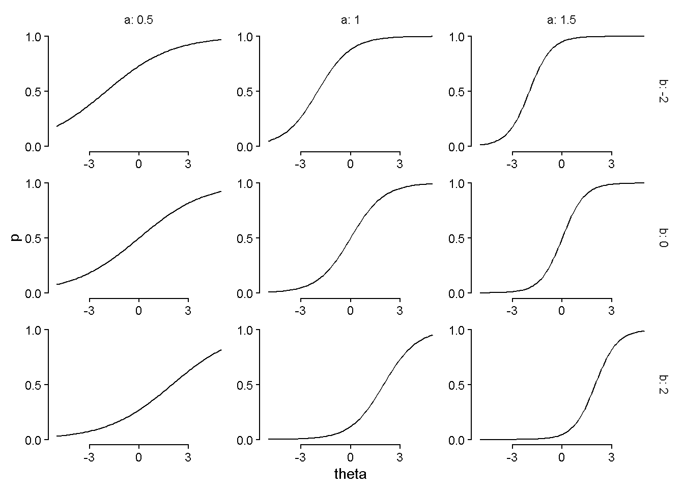 mutate(p = plogis(a * (theta - b))) |>