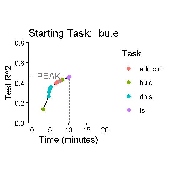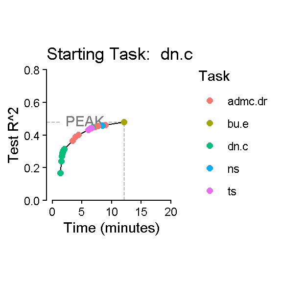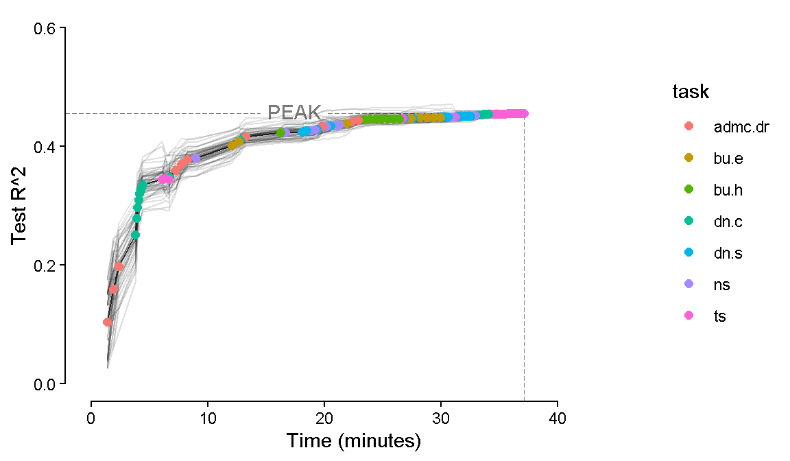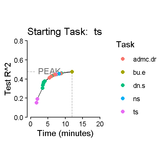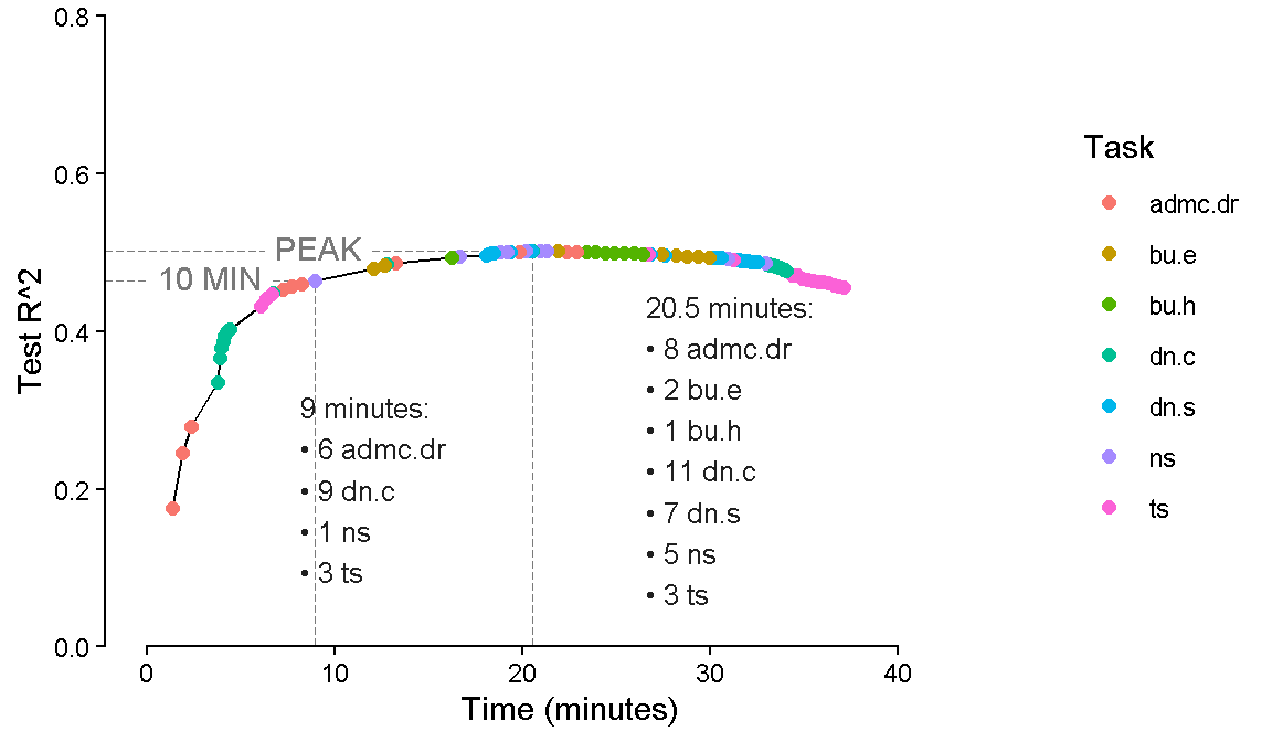 labs(x = "Time (minutes)", y = "Test R^2", color = "Task",
