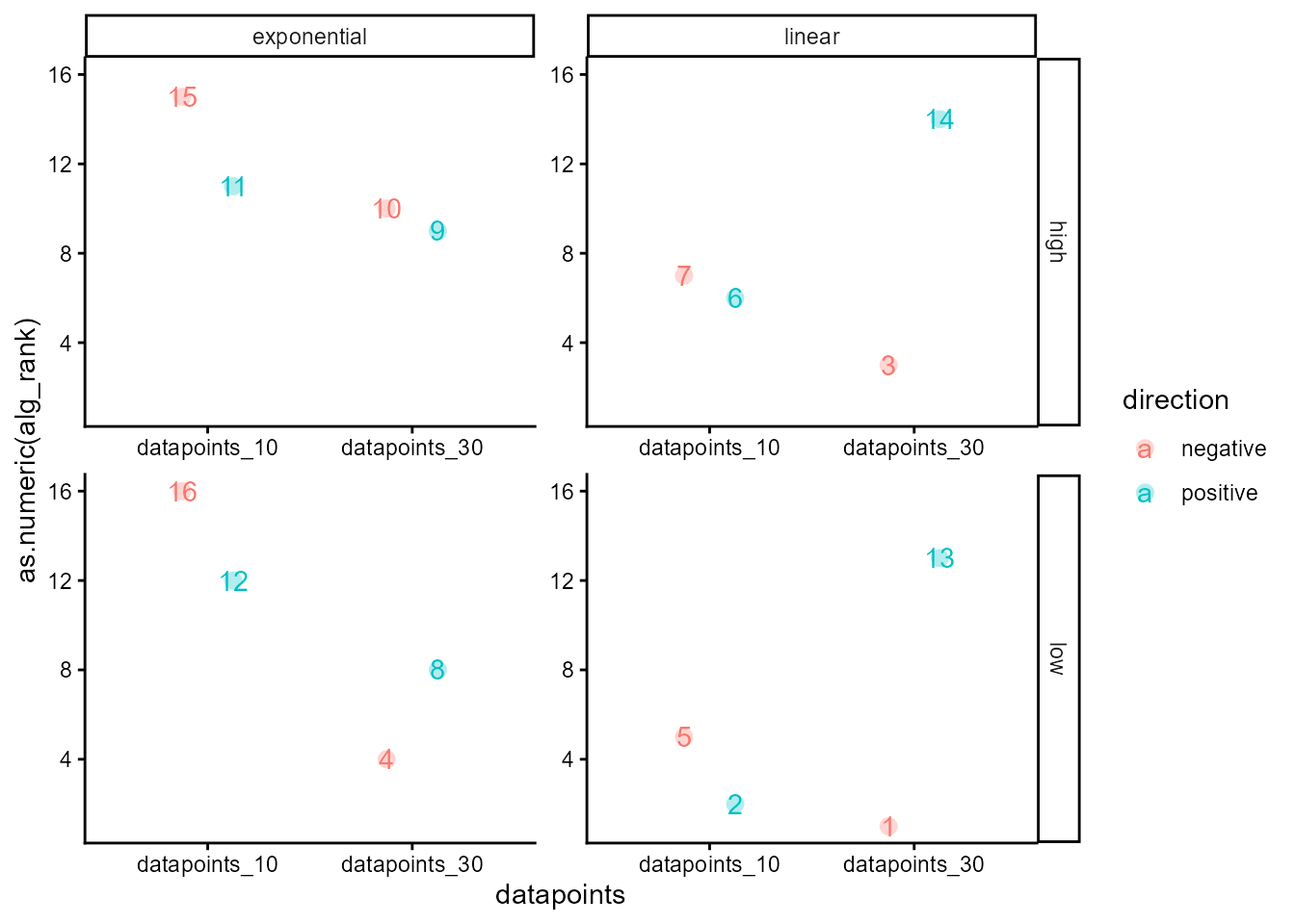 ggplot(aes(y = as.numeric(alg_rank), x = datapoints, color = direction, label = as.numeric(alg_rank))) +
